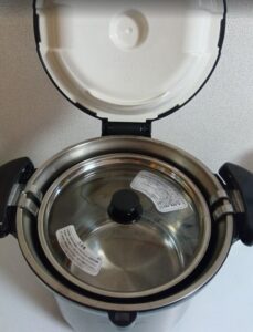 ↑蓋を開けると内鍋が入っていて、こんな感じで保温調理されます♪