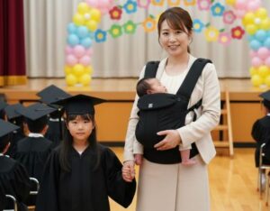 卒園式・入園式に赤ちゃん連れで参加するママにとって、「きちんとした服装をしたいけれど、抱っこ紐だと大変そう…」と感じるのはとても自然なことです。