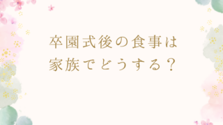卒園式 卒園式後の食事は家族でどうする?行かない選択・おすすめランチや個室の考え方【2026年版】 ※このページはPRを含みます。卒園式という大きな節目を迎えたあと、「卒園式のあと、家族で食事はしたほうがいいの?」「卒園式後食事会に行かないのは失礼?」と悩む方は少なくありません。実際には、家庭ごとに選び方はさまざまで、正解は一つではありま... 卒園式